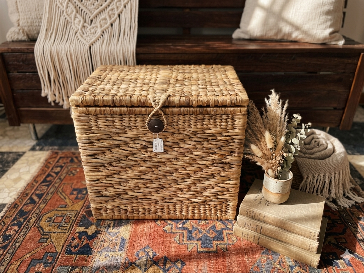 Organiza y aporta un toque decorativo a tu hogar con nuestro Baúl Jacinta elaborado con fibras naturales, diseñado con un estilo elegante y atractivo que encaja perfectamente en cualquier ambiente.