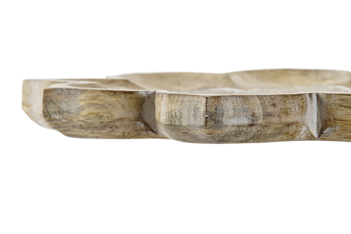 Este centro de mesa está elaborado en madera de mango de alta calidad, destacando por su resistencia y belleza natural. Su diseño en forma de mandala aporta un toque artístico y espiritual, convirtiéndolo en una pieza única de decoración.