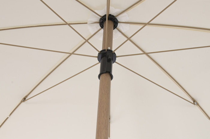 Parasol de estructura de aluminio con tejido de olefina, resistente y diseñado para uso exterior. Su tamaño de 200 x 200 x 170 cm ofrece una amplia zona de sombra, ideal para terrazas, jardines o espacios junto a la piscina.