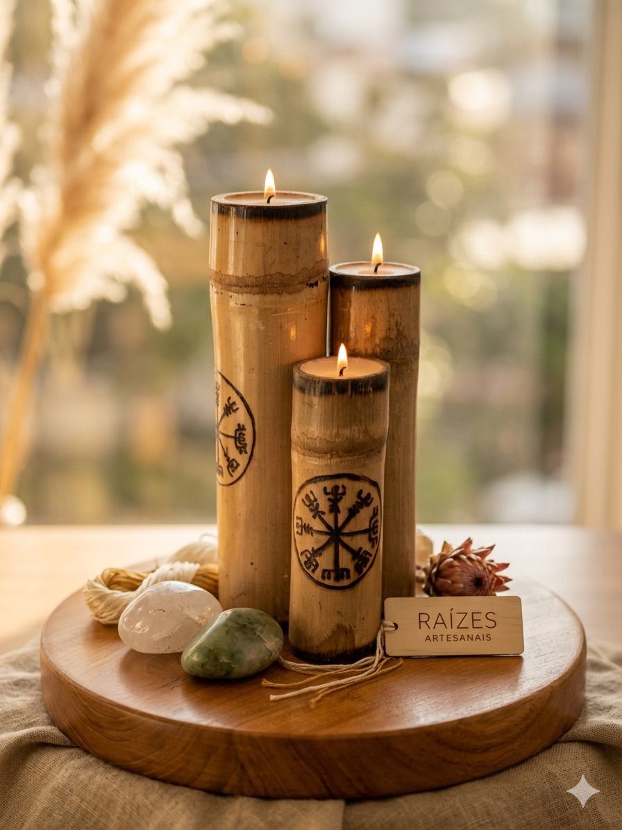 SET 3 VELAS DE BAMBÚ 30, 20, 25 CM
